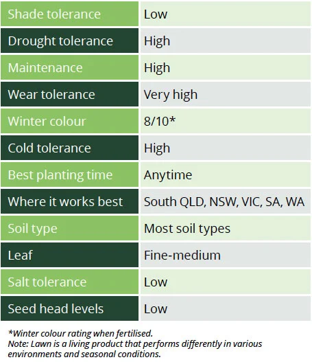 Kenda® Kikuyu is the ideal lawn to handle all kinds of wear and tear – whether it be large dogs, active kids or backyard parties. And for homeowners’ keen for a good coloured tough lawn, Kenda® grass has the best winter colour of all the warm season turfs – even better than other Kikuyu varieties.
